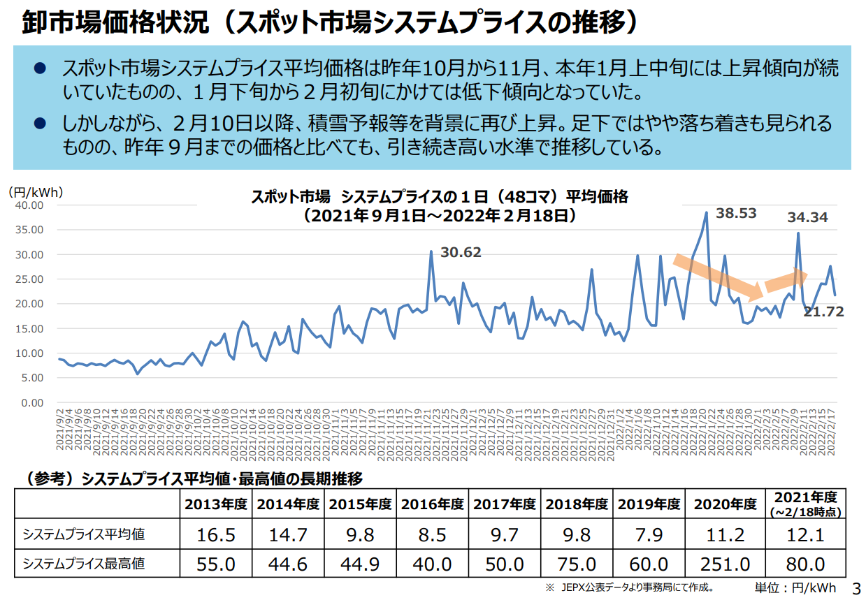 出典:経済産業省資源エネルギー庁「スポット市場価格の動向等について」2022年2月18日