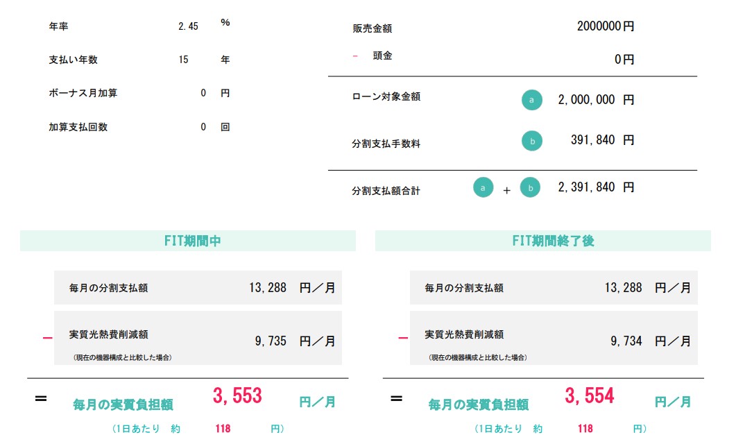 | 4kW太陽光発電+蓄電池6.5kWh | 2,020,295円 | 2,000,000円 | 3,553円/月 |