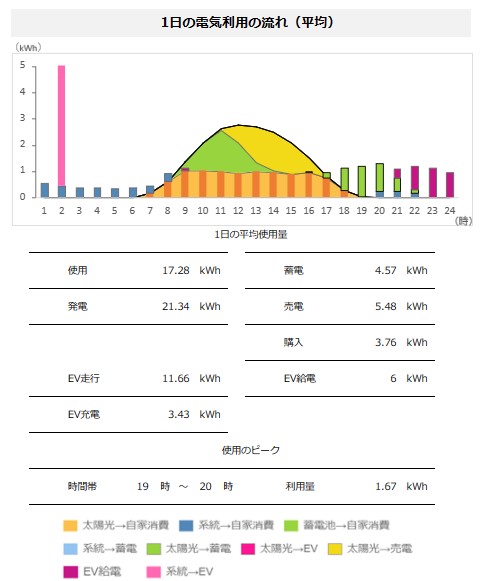 深夜1時~2時の薄ピンク色は、電気自動車の充電時間を1時~2時に設定しているためです。