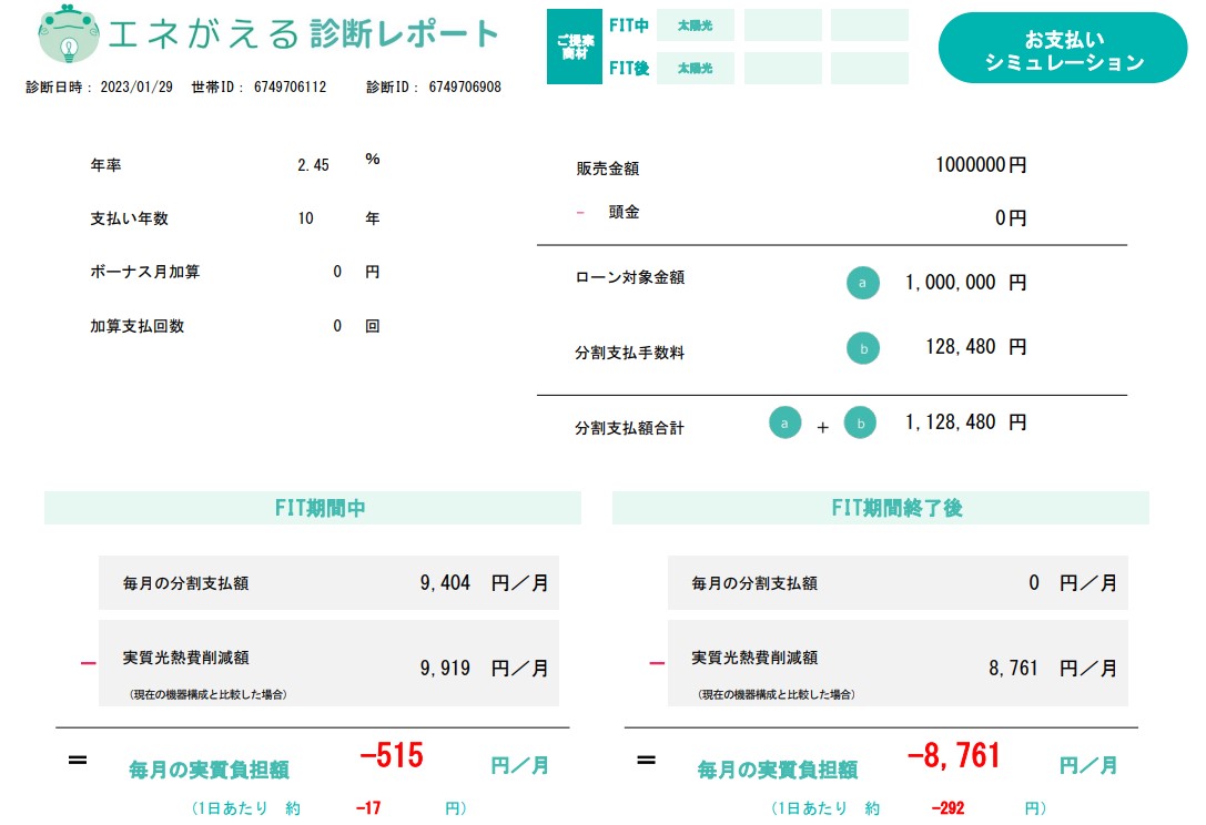 つまり、「月額ローンで支払う金額」よりも「光熱費を削減する金額」の方が高くてお得ということです。